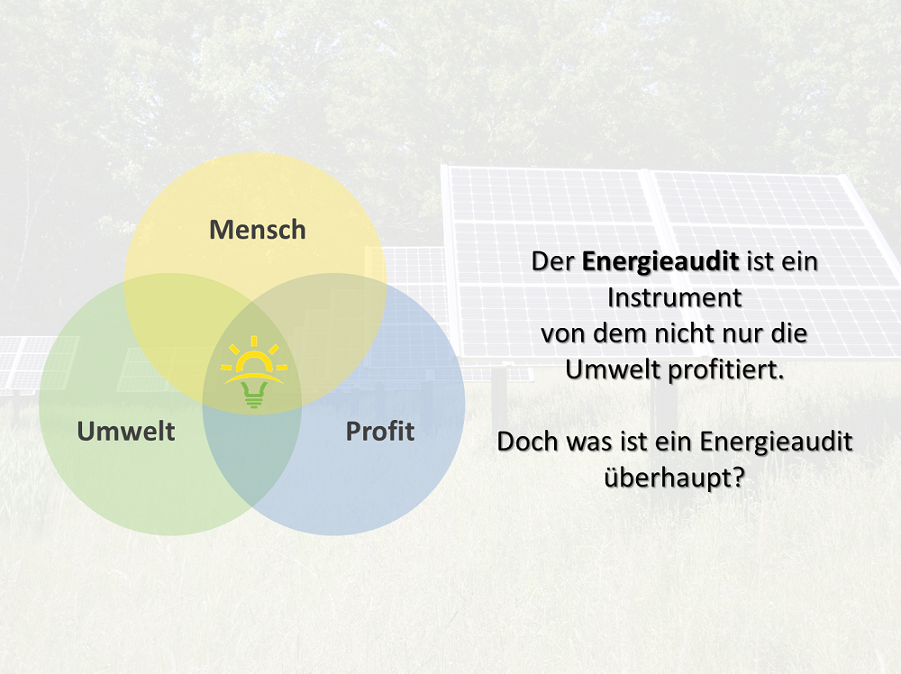 Seit 2015 ist jedes Nicht-KMU (kleines und mittelständisches Unternehmen) gesetzlich verpflichtet alle vier Jahre einen Energieaudit nach DIN EN 16247 durchzuführen. Die Norm stellt dafür ein systematisches Verfahrensschema zur Verfügung, welches als Ergebnis Einsparpotenziale ermittelt und quantifiziert. Im Rahmen der Auditierung wird eine Bestandsaufnahme, sowie eine Bewertung dieser durchgeführt. Zusammen mit dem auditierten Unternehmen erarbeitet der Energieauditor darauf basierend Maßnahmen zur Energieoptimierung.
